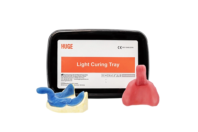 Light Cure Tray est une série de résines de traitement léger indiquées pour la fabrication de plateaux individuels pour l'impression, des plaques de base temporaires pour disposer les dents et également des plaques de morsure pour le réglage des prothèses amovibles.